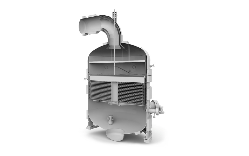 Die Flachschlangen-Heizflächenelemente ermöglichen eine kompakte Einzelgefäßkonstruktion, während die Regelverdampfertechnologie konstante Gasaustrittstemperaturen über den gesamten Lastbereich gewährleistet. Der niedrige gasseitige Druckabfall und der geringe Anlaufdampfbedarf verbessern den Wirkungsgrad und machen diesen Kühler äußerst zuverlässig und kostengünstig.